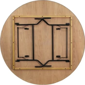 - 72” Round Wood Folding Banquet Table with Clear Coated Finished Top