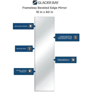 - Glacier Bay Frameless Mirror In 16 In. X 60 In. Provides A Full Length View