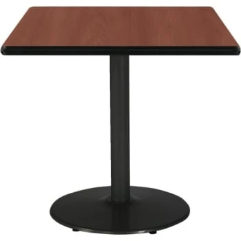 - 30″ Square Pedestal Table With Mahogany Top, Round Black Base