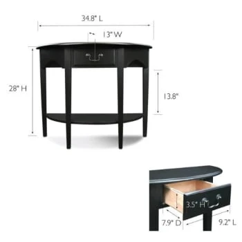 - Leick Home One Drawer Demilune Console Table With Shelf