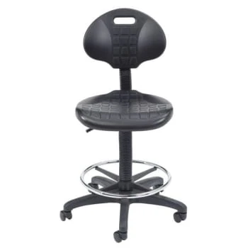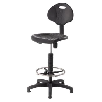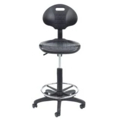 - Polyurethane Height Adjustable Task Stool With Backrest, Black