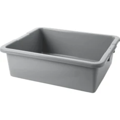 - The Rubbermaid Commercial utility tote is constructed of commercial grade plastic. BPA-free, the utility box features reinforced handles and bottom, and ribs for extra strength. Rounded corners for easy cleaning. The bus/utility tote is ideal for dishwashing, hotels, bars, and restaurants. Commercial dishwasher safe.